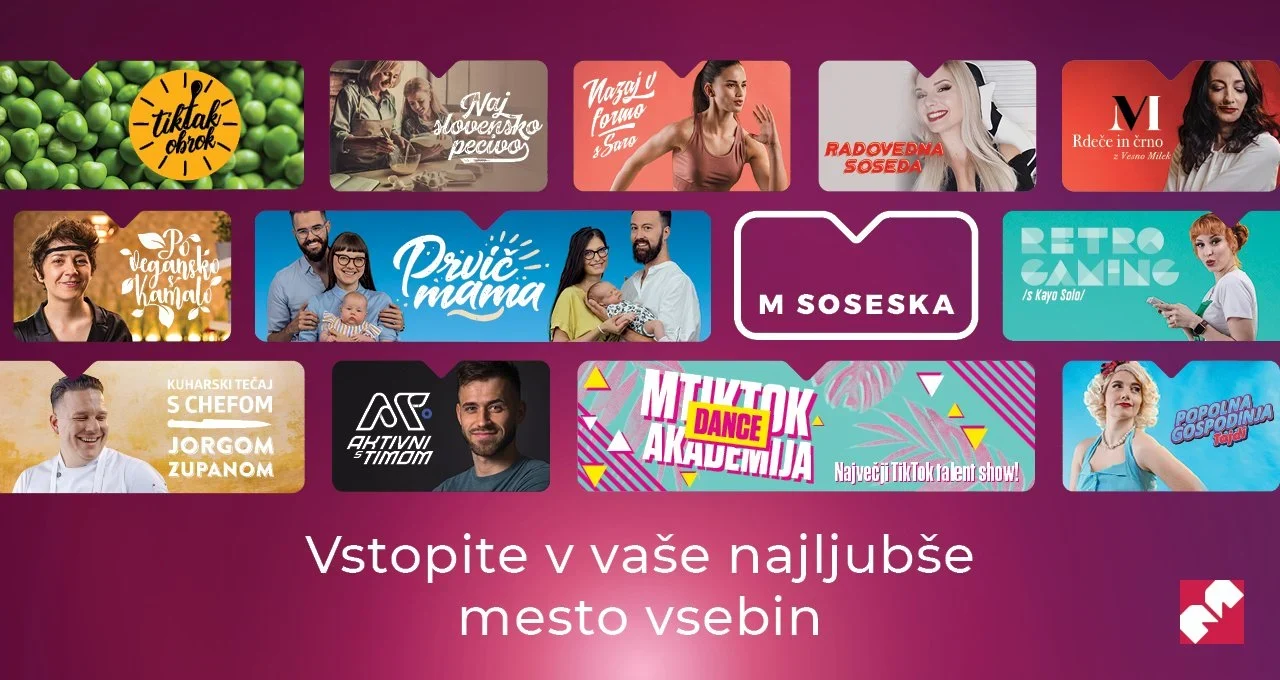 Najnovejši, izjemni vsebini pa sta prva resničnostna oddaja o družinskem življenju z novorojencem Prvič mama in MTikTok Dance akademija, ki je ne le slovenski, ampak regionalni plesni show s hudo privlačno nagrado.