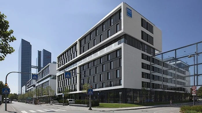 Hotelski referenčni objekt v nemškem Münchnu je bil zgrajen leta 2016 in spada med objekte za namestitev poslovnih partnerjev Microsoft EU. Okna so izvedena s PVC sistemom Schüco Corona CT 70, z dodatno zvočno zaščito.